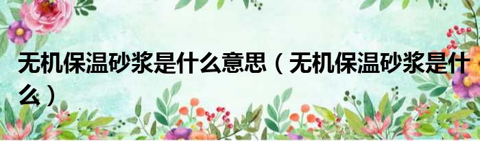 无机保温砂浆是什么意思(无机保温砂浆是什么)