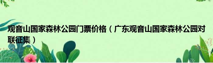 观音山国家森林公园门票价格(广东观音山国家森林公园对联征集)