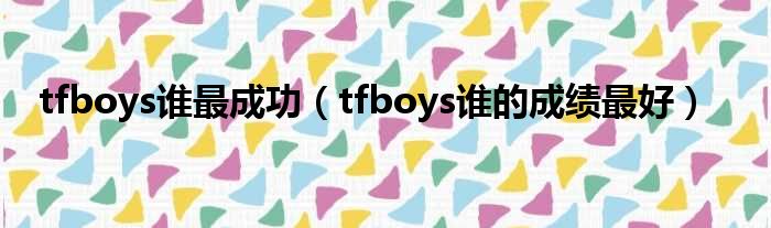 大家好,今天小六子来为大家解答以下的问题,关于tfboys谁最成功,tfboys谁的成绩最好这个很多人还不知道,现在让我们一起来看看吧!