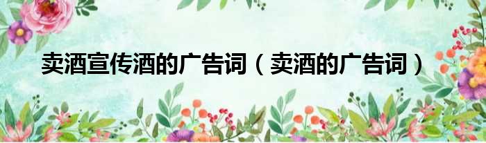 大家好,今天小六子来为大家解答以下的问题,关于卖酒宣传酒的广告词,卖酒的广告词这个很多人还不知道,现在让我们一起来看看吧!
