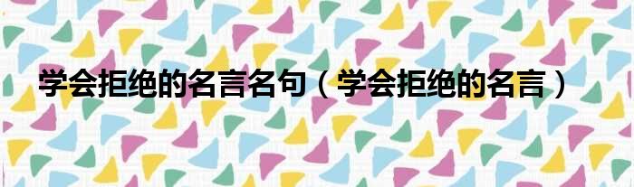 大家好,今天小六子来为大家解答以下的问题,关于学会拒绝的名言名句,学会拒绝的名言这个很多人还不知道,现在让我们一起来看看吧!