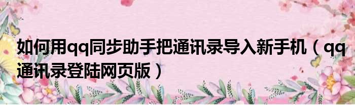 导读 大家好,今天小六子来为大家解答以下的问题,关于如何用qq同步助手把通讯录导入新手机,qq通讯录登陆网页版这个很多人还不知道,现在让我们