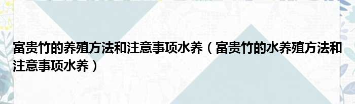 富贵竹的养殖方法和注意事项水养(富贵竹的水养殖方法和注意事项水养)
