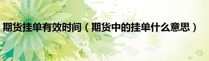 期货挂单有效时间(期货中的挂单什么意思)