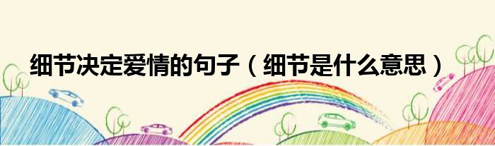 导读 大家好,今天小六子来为大家解答以下的问题,关于细节决定爱情的句子,细节是什么意思这个很多人还不知道,现在让我们一起来看看吧!1、①不