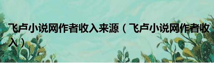 导读 大家好,今天小六子来为大家解答以下的问题,关于飞卢小说网作者收入来源,飞卢小说网作者收入这个很多人还不知道,现在让我们一起来看看吧