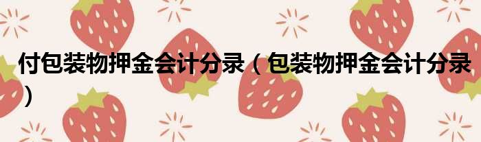 导读 大家好,今天小六子来为大家解答以下的问题,关于付包装物押金会计分录,包装物押金会计分录这个很多人还不知道,现在让我们一起来看看吧!1
