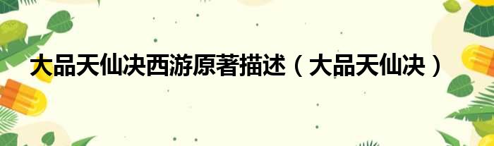 大品天仙决西游原著描述(大品天仙决)