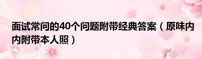 导读 大家好,今天小六子来为大家解答以下的问题,关于面试常问的40个问题附带经典答案,原味内内附带本人照这个很多人还不知道,现在让我们一起