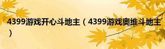4399游戏开心斗地主(4399游戏奥维斗地主)