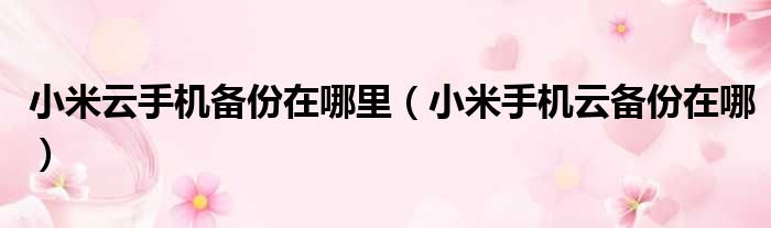 导读 大家好,今天小六子来为大家解答以下的问题,关于小米云手机备份在哪里,小米手机云备份在哪这个很多人还不知道,现在让我们一起来看看吧!1