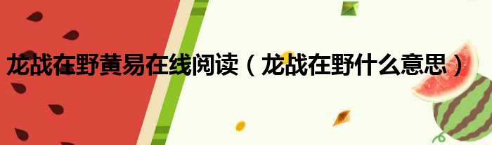 龙战在野黄易在线阅读(龙战在野什么意思)