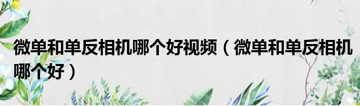 导读 大家好,今天小六子来为大家解答以下的问题,关于微单和单反相机哪个好视频,微单和单反相机哪个好这个很多人还不知道,现在让我们一起来看