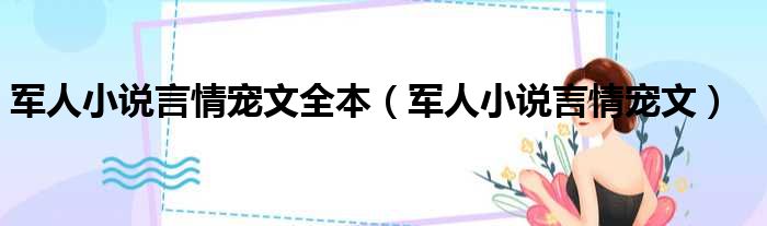 大家好,今天小六子来为大家解答以下的问题,关于军人小说言情宠文全本,军人小说言情宠文这个很多人还不知道,现在让我们一起来看看吧!