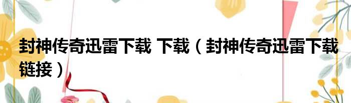 导读 大家好,今天小六子来为大家解答以下的问题,关于封神传奇迅雷下载 下载,封神传奇迅雷下载链接这个很多人还不知道,现在让我们一起来看看