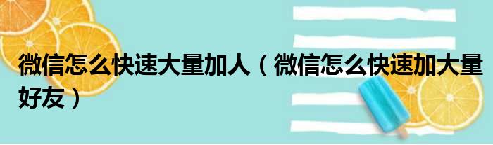 微信怎么快速大量加人(微信怎么快速加大量好友)