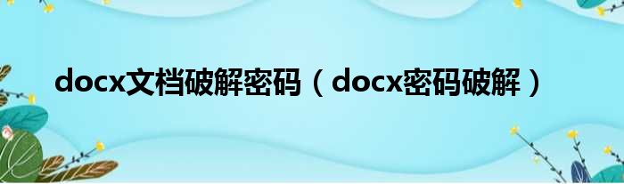 大家好,今天小六子来为大家解答以下的问题,关于docx文档破解密码,docx密码破解这个很多人还不知道,现在让我们一起来看看吧!