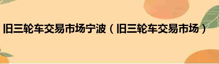 旧三轮车交易市场宁波(旧三轮车交易市场)