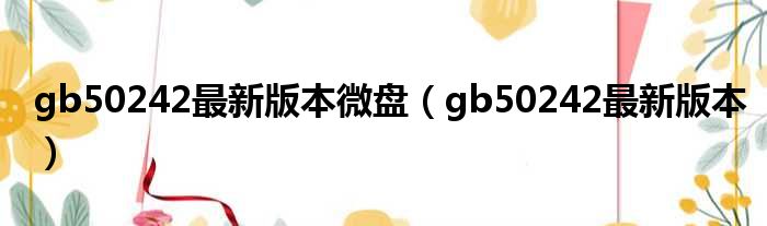 导读 大家好,今天小六子来为大家解答以下的问题,关于gb50242最新版本微盘,gb50242最新版本这个很多人还不知道,现在让我们一起来看看吧!1、建