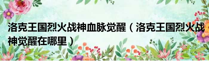 导读 大家好,今天小六子来为大家解答以下的问题,关于洛克王国烈火战神血脉觉醒,洛克王国烈火战神觉醒在哪里这个很多人还不知道,现在让我们一