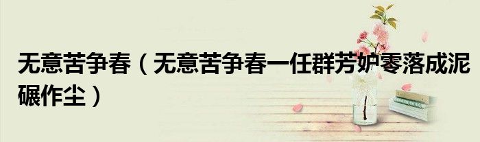 导读 大家好,今天小六子来为大家解答以下的问题,关于无意苦争春,无意苦争春一任群芳妒零落成泥碾作尘这个很多人还不知道,现在让我们一起来看