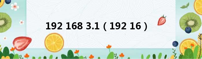 192 168 3.1(192 16)
