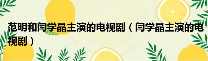 范明和闫学晶主演的电视剧(闫学晶主演的电视剧)