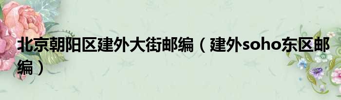 北京朝阳区建外大街邮编(建外soho东区邮编)