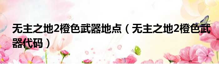 无主之地2橙色武器地点(无主之地2橙色武器代码)