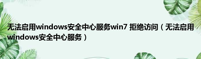 无法启用windows安全中心服务win7 拒绝访问(无法启用windows安全中心服务)