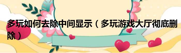 多玩如何去除中间显示(多玩游戏大厅彻底删除)