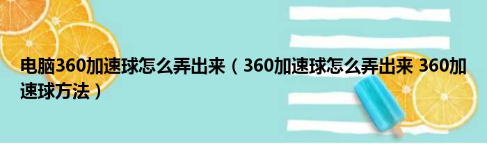 电脑360加速球怎么弄出来(360加速球怎么弄出来 360加速球方法)