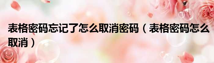 表格密码忘记了怎么取消密码(表格密码怎么取消)