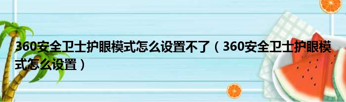 360安全卫士护眼模式怎么设置不了(360安全卫士护眼模式怎么设置)