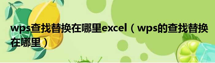 wps查找替换在哪里excel(wps的查找替换在哪里)