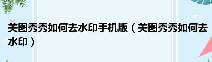 美图秀秀如何去水印手机版(美图秀秀如何去水印)
