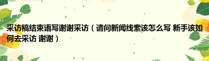 导读 大家好,今天小六子来为大家解答以下的问题,关于采访稿结束语写谢谢采访,请问新闻线索该怎么写 新手该如何去采访 谢谢这个很多人还不知