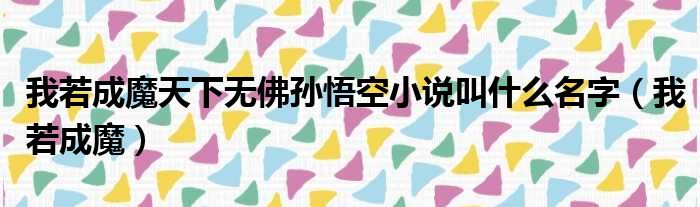 我若成魔天下无佛孙悟空小说叫什么名字(我若成魔)