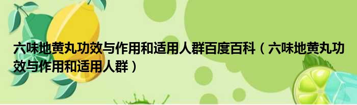 六味地黄丸功效与作用和适用人群百度百科(六味地黄丸功效与作用和适用人群)