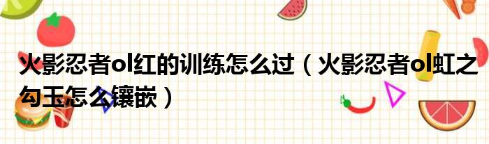 导读 大家好,今天小六子来为大家解答以下的问题,关于火影忍者ol红的训练怎么过,火影忍者ol虹之勾玉怎么镶嵌这个很多人还不知道,现在让我们一