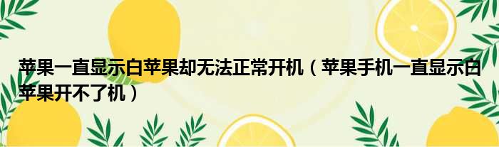 苹果一直显示白苹果却无法正常开机(苹果手机一直显示白苹果开不了机)