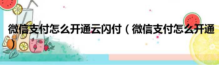 微信支付怎么开通云闪付(微信支付怎么开通)