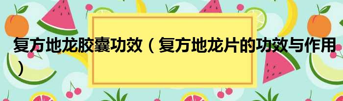 复方地龙胶囊功效(复方地龙片的功效与作用)