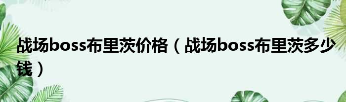 战场boss布里茨价格(战场boss布里茨多少钱)