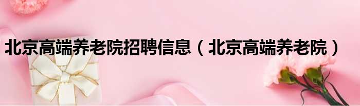 导读 大家好,今天小六子来为大家解答以下的问题,关于北京高端养老院招聘信息,北京高端养老院这个很多人还不知道,现在让我们一起来看看吧!1、