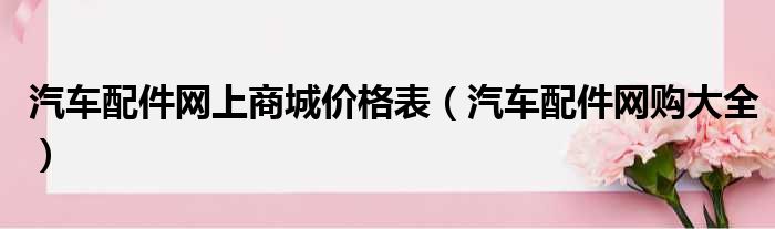 导读 大家好,今天小六子来为大家解答以下的问题,关于汽车配件网上商城价格表,汽车配件网购大全这个很多人还不知道,现在让我们一起来看看吧!1