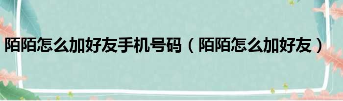 陌陌怎么加好友手机号码(陌陌怎么加好友)