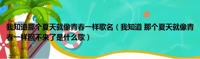 大家好,今天小六子来为大家解答以下的问题,关于我知道那个夏天就像青春一样歌名,我知道 那个夏天就像青春一样回不来了是什么歌这个很多人还不知道,现在让我们一起来看看吧!