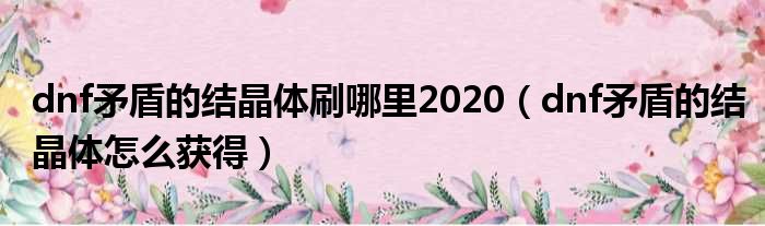 1、DNF游戏内矛盾的结晶体要怎么获得呢?还不知道矛盾的结晶体怎么获得的朋友赶紧一起来看看吧,下面小编为大家带来DNF矛盾的结晶体怎么获得 矛盾的结晶体有什么用。
