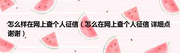 怎么样在网上查个人征信(怎么在网上查个人征信 详细点 谢谢)